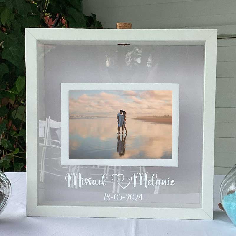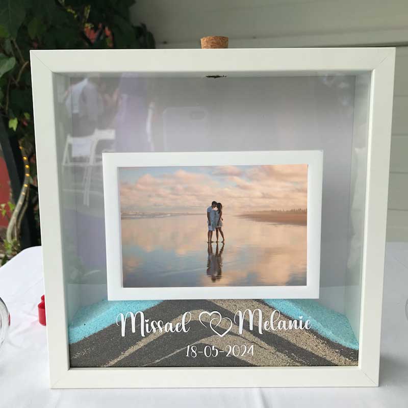Este cuadro para la ceremonia de la arena con foto personalizada contiene: