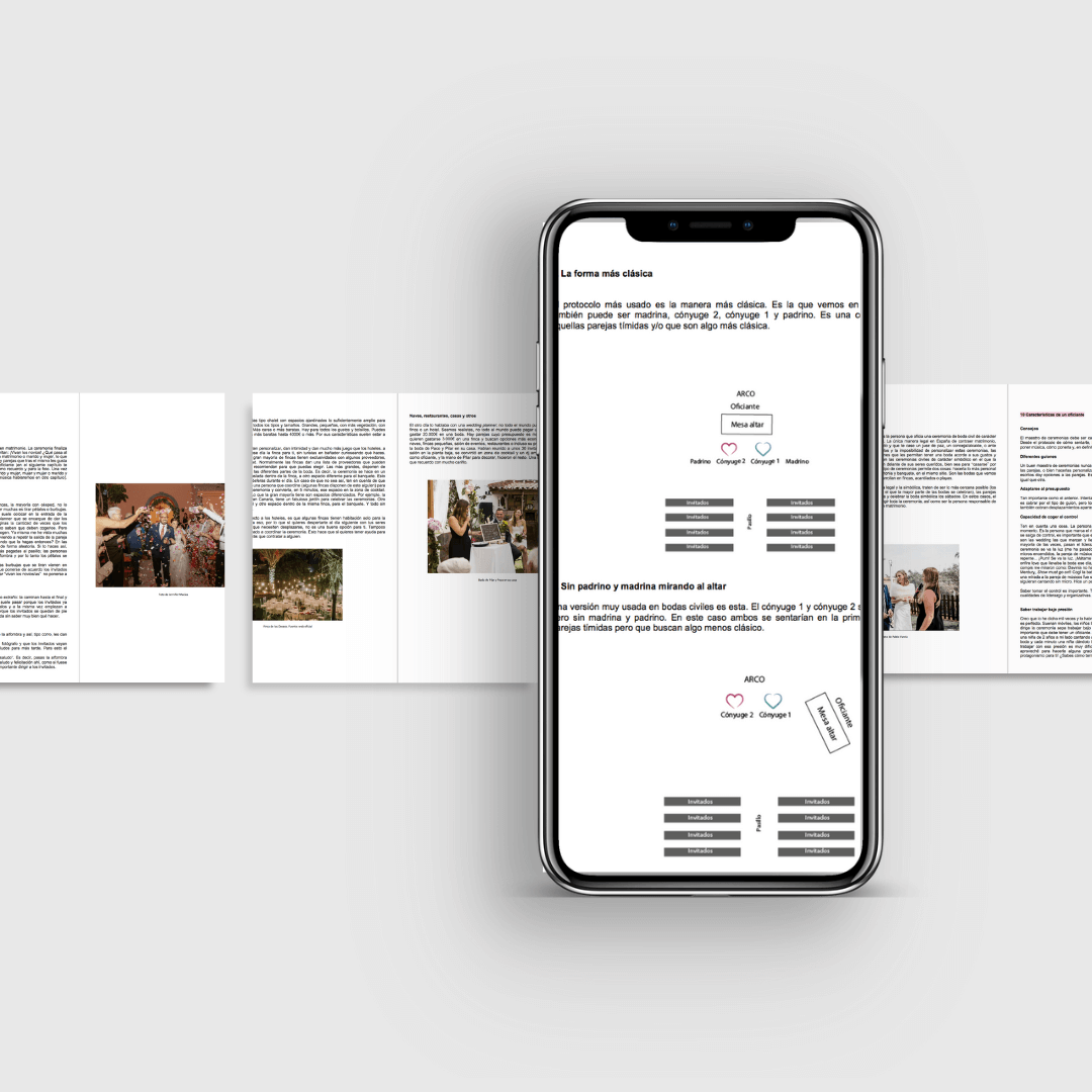 Este ebook de bodas te guiará por todo el proceso de organizar, diseñar, y vivir la ceremonia de tu boda simbólica. Una guía desde el principio hasta el final con anécdotas, ideas, inspiración y mucho aprendizaje recogido a lo largo de los años oficiando bodas simbólicas, para que todo salga genial en tu gran día.