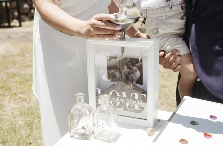 El ritual de la arena lo hace la pareja, pero muchas me preguntan: ¿Podemos añadir a nuestros hijos? ¡Pues claro que sí! Solo tienes que tener en cuenta que necesitas una arena más de diferente color.