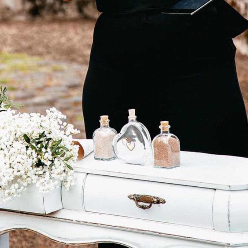 El ritual de la arena es uno de los rituales más conocido y queridos por la pareja durante la ceremonia. Simboliza la unión entre ambos, y les convierte, simbólicamente, en un vínculo inquebrantable e inseparable.