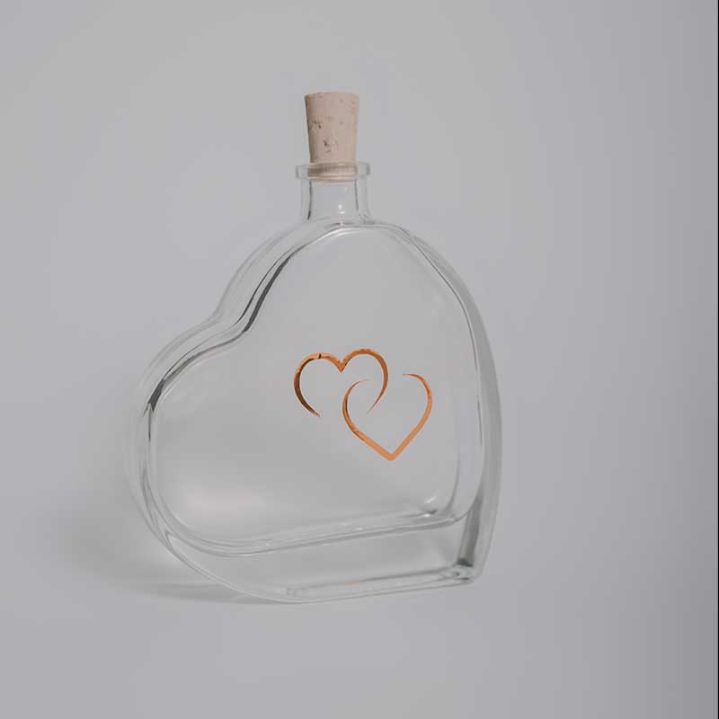 - Corazón de cristal con vinilo dorado y con su corcho.