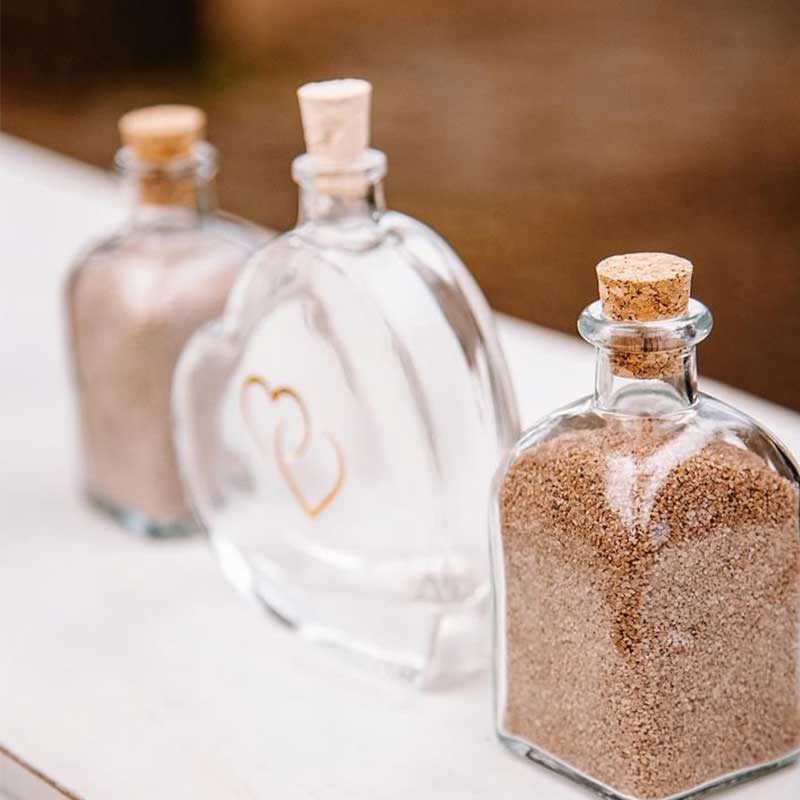 - 2 tarros de cristal de regalo para la arena con sus corchos.