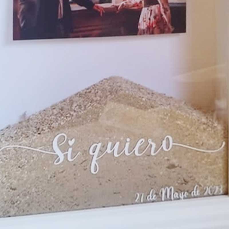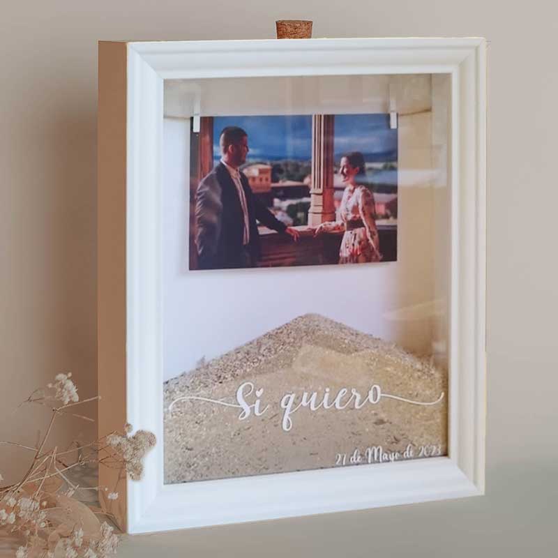 Tenemos otros marcos de la arena que puedes personalizar de diferentes maneras. Descubre los modelos aquí. Si quieres que diseñemos uno para ti exclusivo mándanos un email o síguenos por instagram y nos los cuentas: @lanoviavaderosa